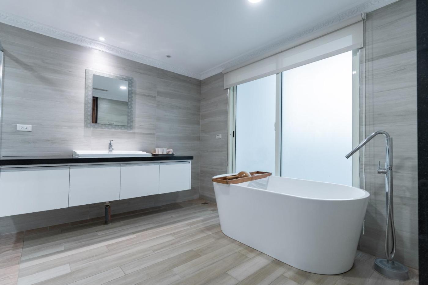 Executive Quadruple Room with Bathtub. This air-conditioned quadruple room is comprised of a flat-screen TV with cable channels, a private bathroom as well as a balcony. The unit has 2 beds. ;
